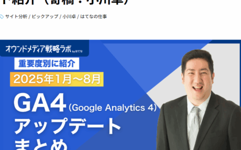 重要度別:2025年1-8月 GA4のアップデート紹介 Google Analytics 4(以下、「GA4」)は2020年に正式リリースされてからも継続的にアップデートを重ねています。今回の記事では...