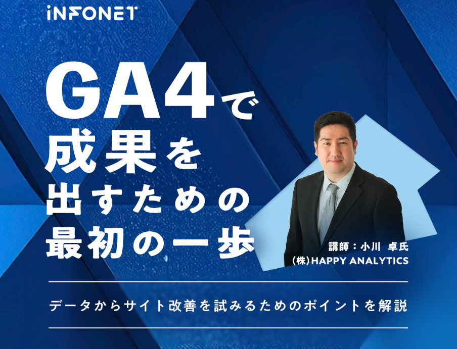 インフォネット主催「GA4で成果を出すための最初の一歩~データからサイト改善を試みるためのポイントを解説~」無料セミナーに登壇します